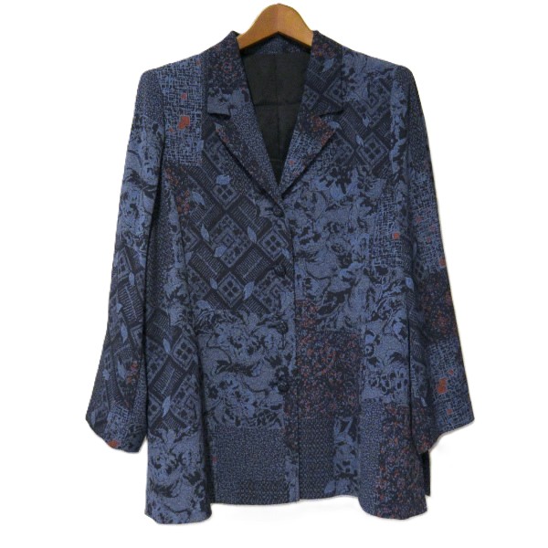 #anc 花梨 KARIN かりん ジャケット L 青系 紺 赤 ちりめん 花柄 総柄 レディース [961717]