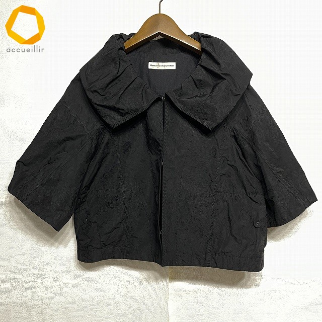 #anc ヒロココシノ HIROKOKOSHINO ジャケット 40 黒 バラ柄 七分袖 レディース [972113]