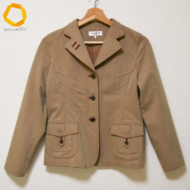 #anc リリアンビューティ Liliane Burty ジャケット S ベージュ 赤 カジュアル ステッチ 美品 レディース [977256]