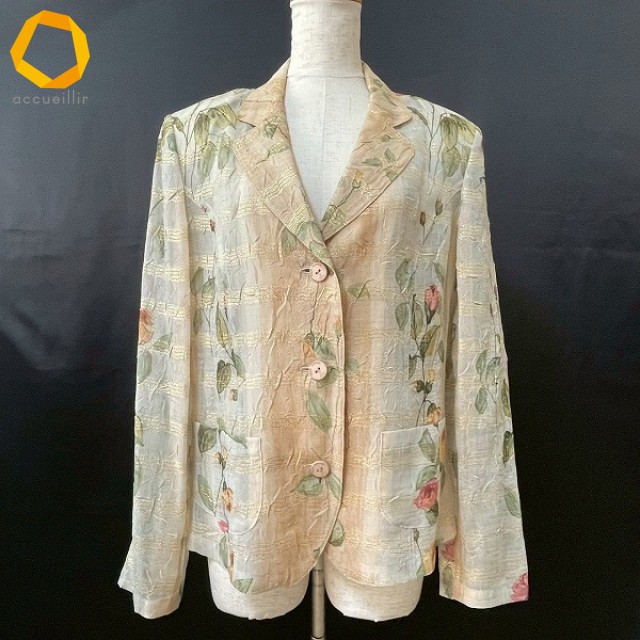 #anc アルバロッサ インポートロッサ ALBA ROSSA import Rossa ジャケット 44 ゴールドラメ 花柄 シースルー 美品 レディース [980588]