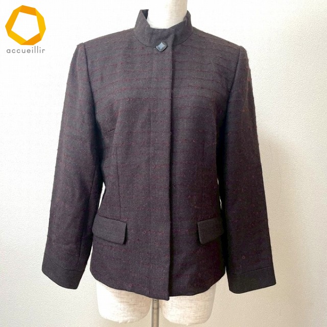 商品名(タイトル):#wnc レリアン Leilian ジャケット 7 こげ茶 赤茶 イタリア製生地 ボーダー スタンドカラー 美品 レディース [984458]