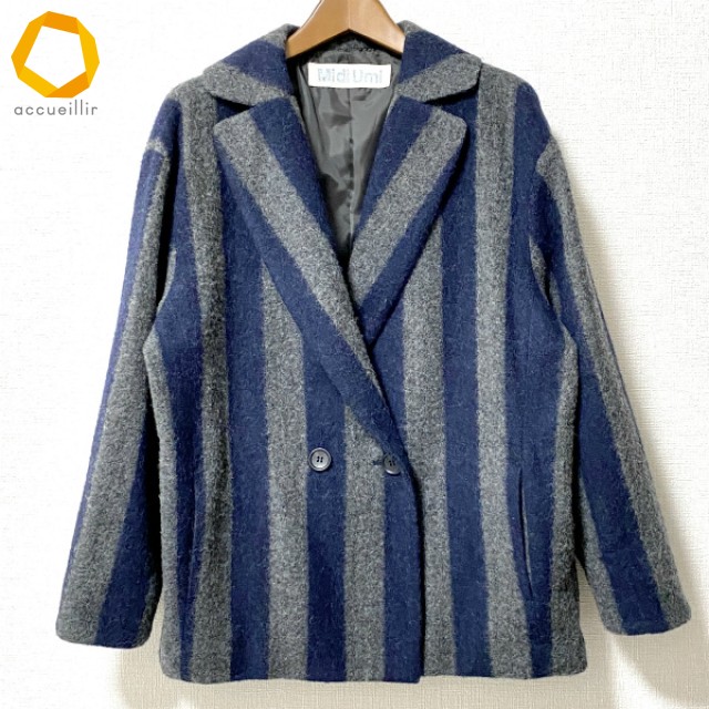 商品名(タイトル):#wnc ミディウミ Midi-Umi ジャケット 紺 グレー ストライプ レディース [988467]