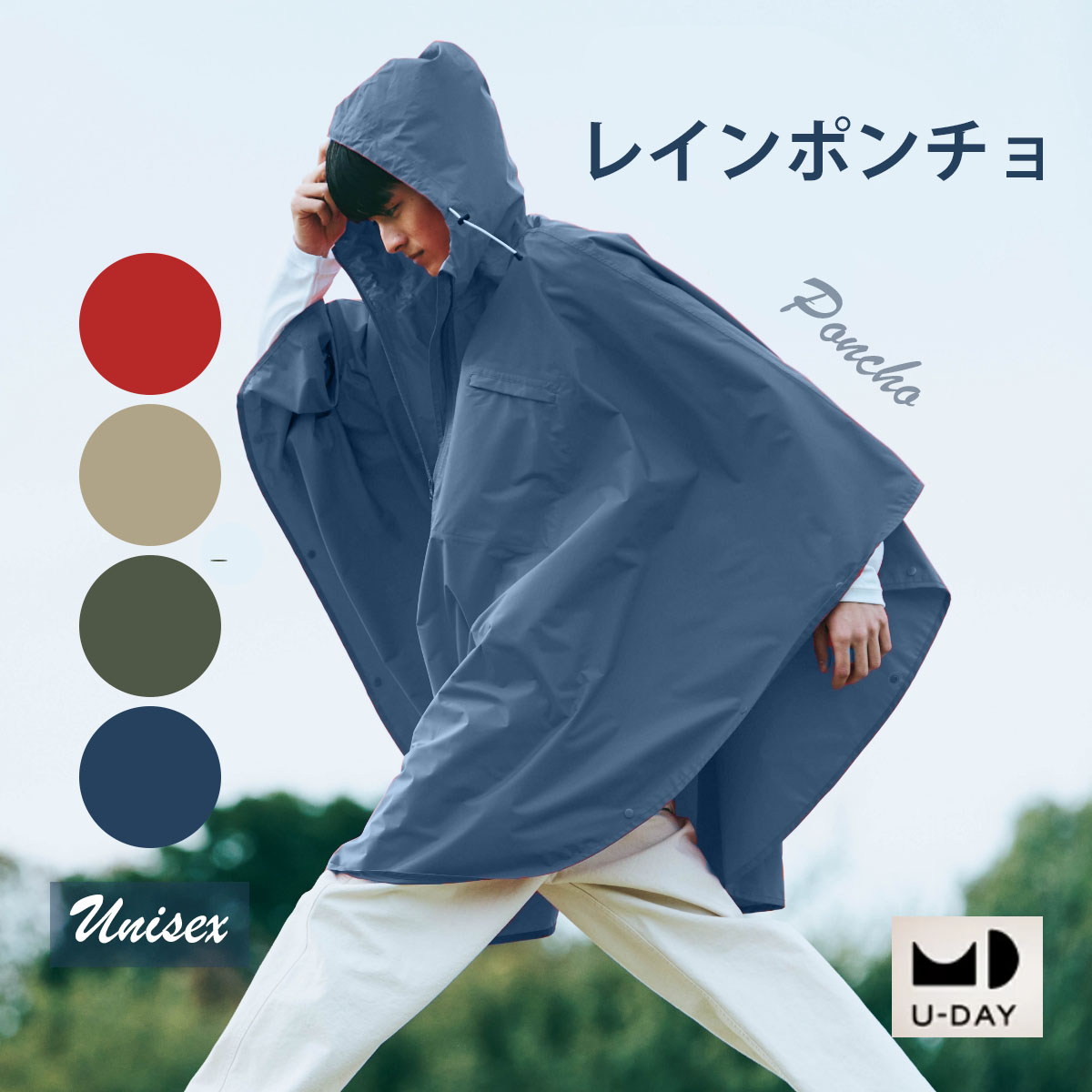 Rain Poncho レインポンチョ 携帯用 軽量 ポーチ付き 男女兼用 雨対策