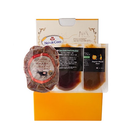 熟成ローストビーフソース:しょうゆ(国内製造)、ソテー玉葱、黒糖、砂糖、かつおぶし、清酒、りんご酢、おろしにんにく、おろし生姜、ごま油、食塩、黒コショー、(一部に小麦・大豆・ごま・りんごを含む)