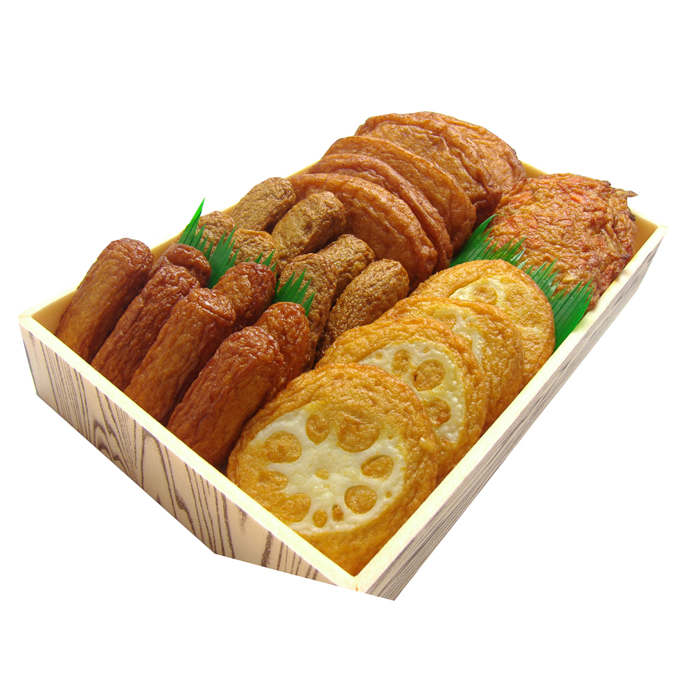 規格:小判揚×5、野菜天×3、上棒天×7、れんこん天×4、いわし棒天×7 (5種、計26個)