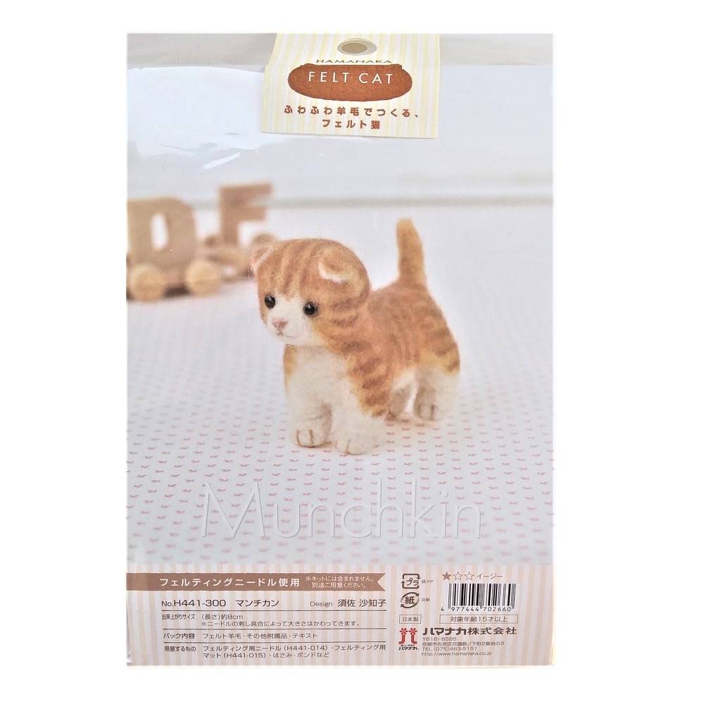 ハマナカのふわふわ羊毛でつくるフェルト猫(FELT CAT)、マンチカン H441-300、今すぐ始めたくなるキットシリーズです。送料無料。