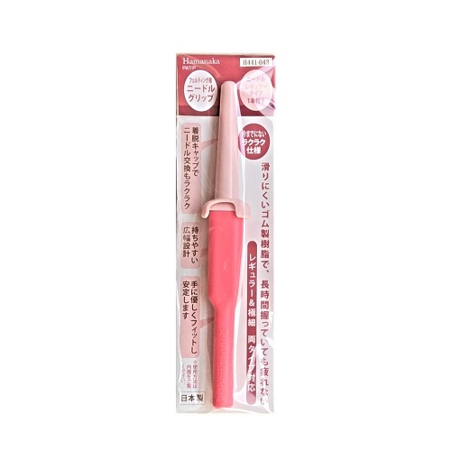 今までにないラクラク仕様。滑りにくいゴム製樹脂で、長時間握っていても疲れません。レギュラー&極細、両タイプのニードル対応です。