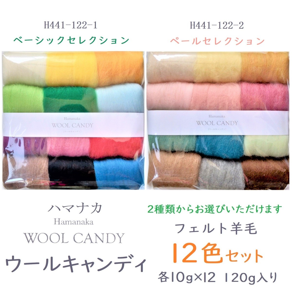 羊毛フェルト用素材 フェルト羊毛12色セット ウールキャンディ ベーシック ペールセレクション ハマナカ WOOL CANDY 手芸 材料 ハンドクラフト 手作り