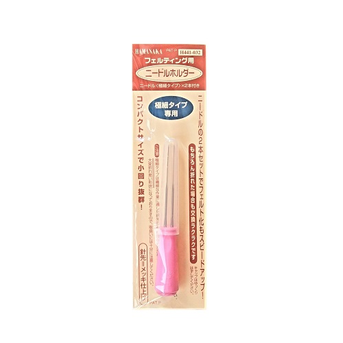 ハマナカのフェルティング用ニードルホルダー、極細タイプのニードル2本付き(針先メッキ仕上げ)です。送料無料。