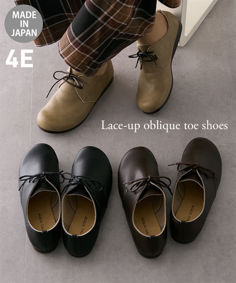 カジュアルシューズ 靴 4E 幅広 ゆったり ワイド 大きいサイズ 日本製 国産 レースアップ オブリークトゥ 軽量 (アクアカルダ)
