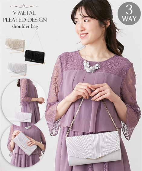 バッグ(鞄) Vメタル プリーツデザイン 3WAY ショルダー セレモニー パーティーバック フォーマル プリーツ 入学式 卒業式 斜め掛け 結婚式 (アクアカルダ)