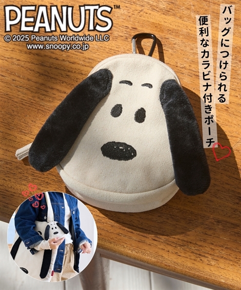 【コメント】とにかく可愛い!!!スヌーピーの愛されフェイスポーチが新登場。いつも一緒に持ち歩きたいから、使いやすいサイズ感と形状にこだわり。ワイヤレスイヤホンとリップなどの小物を入れておくのにちょうどよいサイズ感。スヌーピーらしく、耳はフカフカとした手触りの良い素材を仕様しております。絶対持ち歩くもの、にフォーカスし、定期件やカードケース、またはワイヤレスイヤホンなどがちょうどきれいに収まるサイズ感にしました。カラビナでリュックのショルダーや、トートバッグのハンドルにつけても可愛い♪