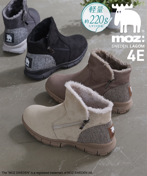コメント北欧発人気ブランド「moz」の軽量ショートブーツ。サイドファスナーが脱ぎ履きのストレスをぐっと減らしてくれます。かかとのエルクマークで後ろ姿も可愛い!スカート合わせでもパンツスタイルでも、どんな服装にも合わせやすいアイテムです。内側つま先までエコファー仕様なので暖かいです。屈曲性のあるソールで歩きやすい、サイドファスナーで着脱しやすいブーツです。