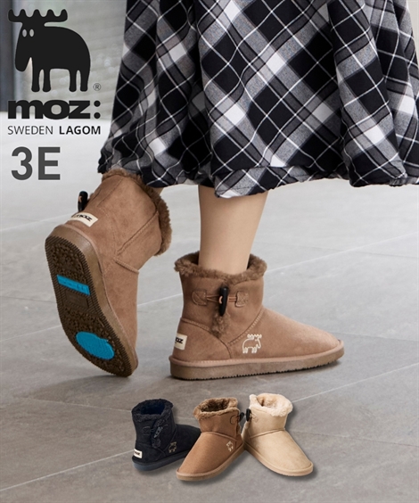 ブーツ 靴 moz モズ レディース トグル付 ムートン調 あったか 防寒 ショートブーツ ボア へらじか カジュアル ローヒール 3E相当 (アクアカルダ)