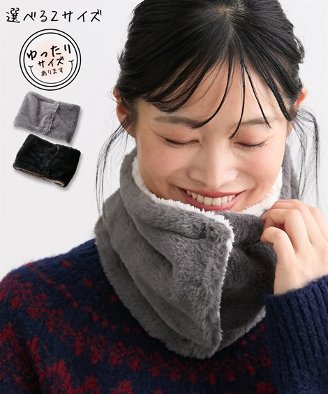 ファッション雑貨 裏側やわらか シープタッチ エコファー ボタン付 ネックウォーマー 選べる2サイズ 防寒 あったか つけえり ぴったり 付け襟 (アクアカルダ)