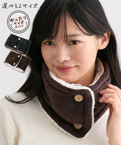 ファッション雑貨 無地ボタン付 裏側シープタッチ ボタン付き ネックウォーマー 選べる2サイズ 防寒 あったか つけえり ぴったり ゆったり ボア (アクアカルダ)