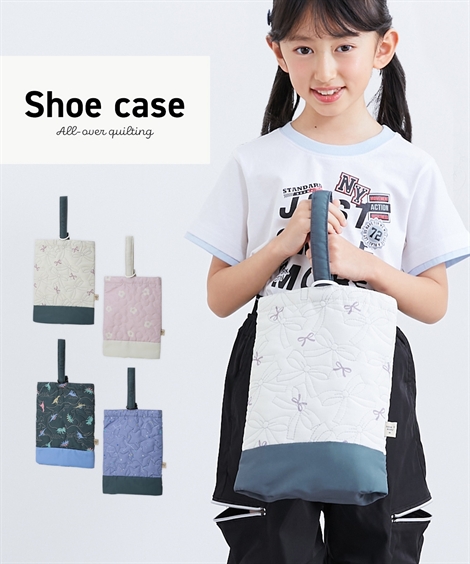 バッグ(鞄) キッズ 学童 子供用 総柄キルティング シューズケース 男の子 女の子 入園 入学 新学期準備 上履き入れ 体育館シューズ 通園 通学 (アクアカルダ)
