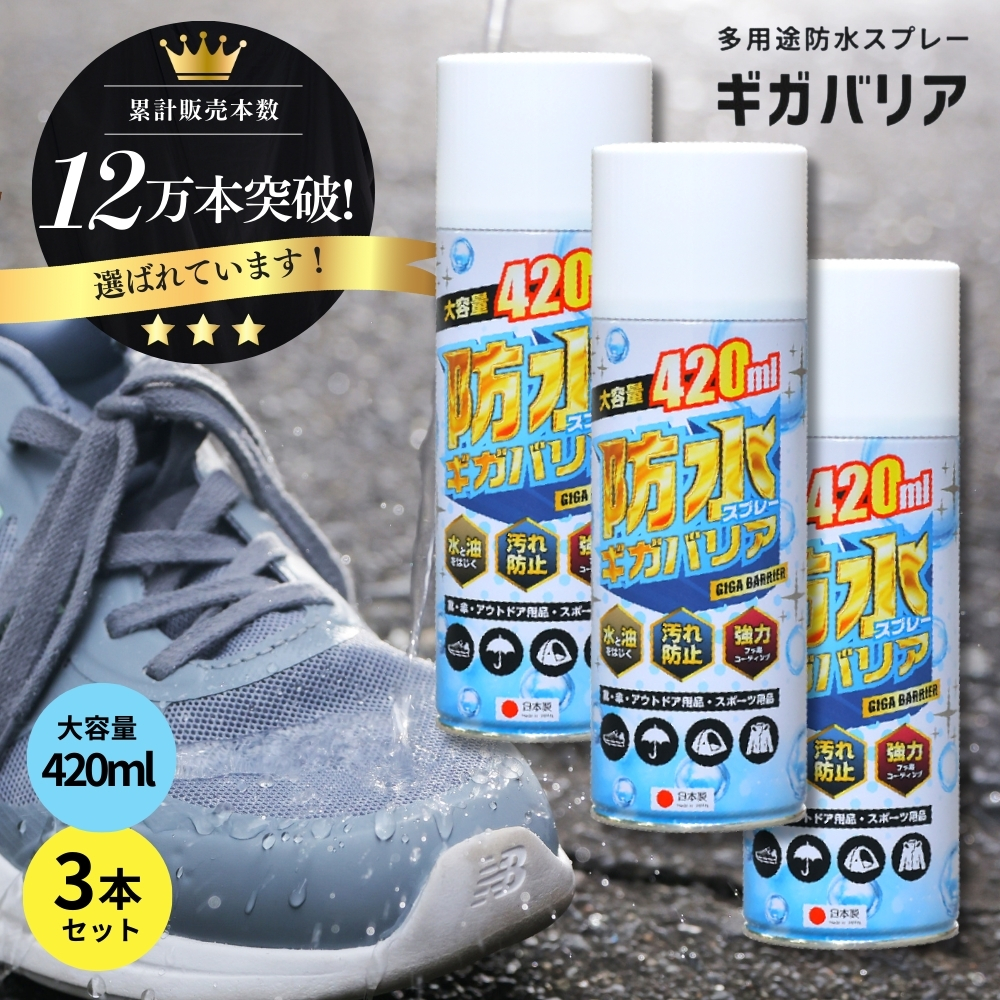防水スプレー 防汚 防油 靴 服 撥水 強力 革 レザー テント ギガバリア 3本 セット 420ml ugg 鞄 傘 長靴 大容量 キャンプ グランピング ポイント利用