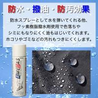 特徴 防水・撥油・防汚・抗菌の効果で、レザー・ファブリック製品を保護するプロテクティブスプレーです。繊維1本1本に、フッ素系撥水。撥油剤をコーティングすることにより水分・ホコリ・ゴミ・油分等の汚れから守ります。菌の増殖を抑制し、清潔な状態をキープします。ニオイの原因菌にも効果的です。※すべての菌に効果があるわけではありません。素材の柔軟性や通気性をそこないません。