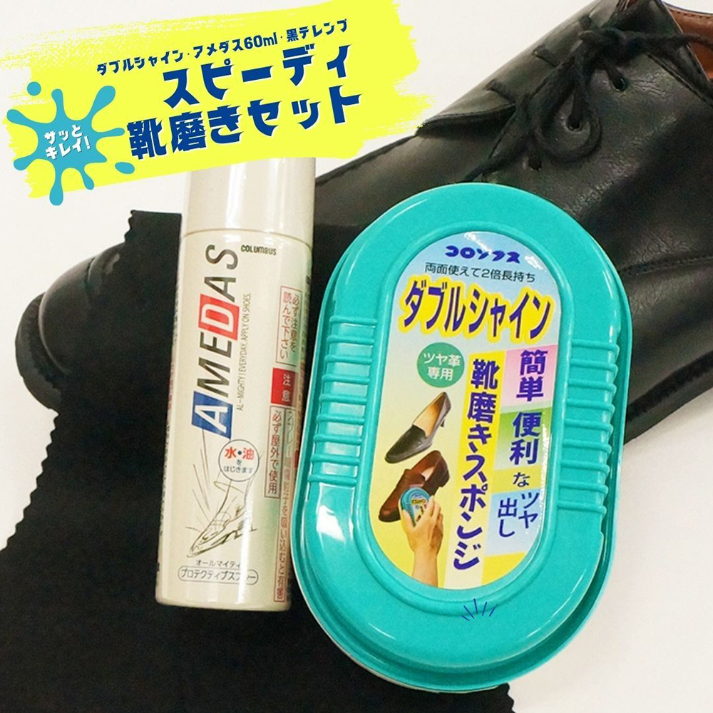 スピーディー靴磨きセット ダブルシャイン アメダス 60ml 黒テレンプ セット コロンブス Columbus キレイな状態をキープ 撥水 防水 防汚スプレー