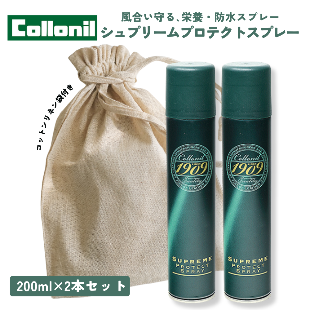 防水スプレー 靴 服 最強 強力 革 コロニル 1909 シュプリームプロテクトスプレー 2本 セット リネン袋付き 200ml