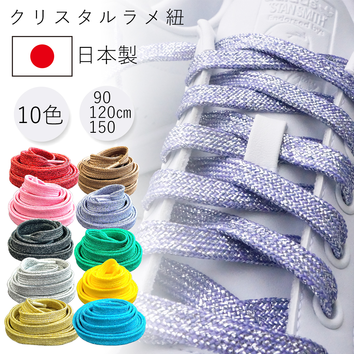 靴紐 靴ひも 平紐 シューレース キラキラ アクティカ 日本製 ダンス シューズ ジム フィットネス 推しカラー クリスタル ラメ 90cm 120cm 150cm ポイント利用