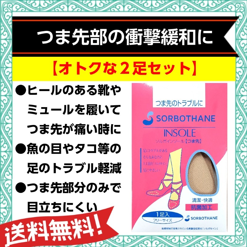 インソール中敷き 薄い 衝撃吸収 魚の目 パンプス ハーフ サイズ調整 ソルボ つま先 2足セット
