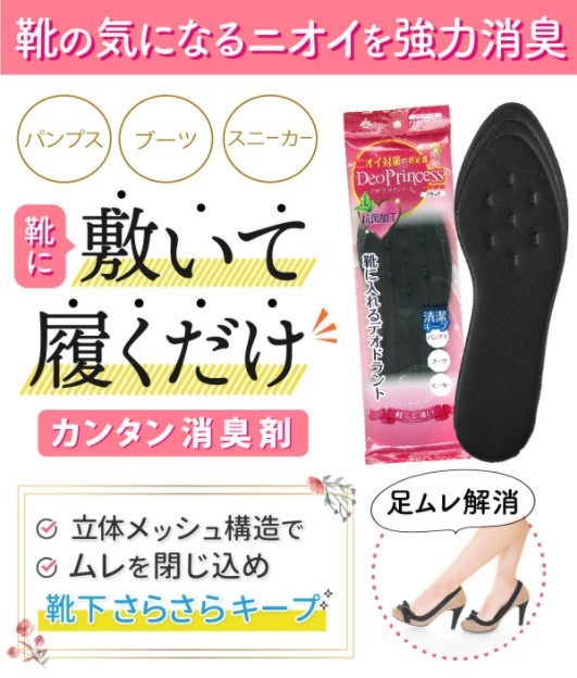 インソール 中敷き 消臭 蒸れ 足ムレ 予防 薄い 足の臭い対策 足の臭いとる方法 パンプス デオプリンセス ブラック ベージュ