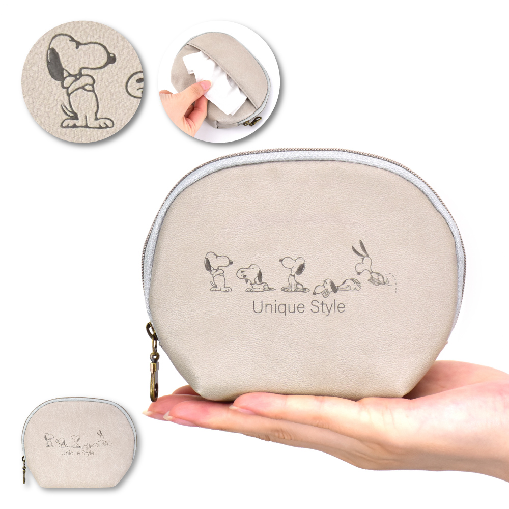 スヌーピー ティッシュポーチ 小物入れ 化粧ポーチ コスメ トラベル 合皮 フェイクレザー シンプル 大人 レディース 女性 女子 女の子 大学生 高校生 中学生 小学生 携帯用 整理 通勤 通勤 旅行 おしゃれ 可愛い かわいい キャラクター グッズ 人気