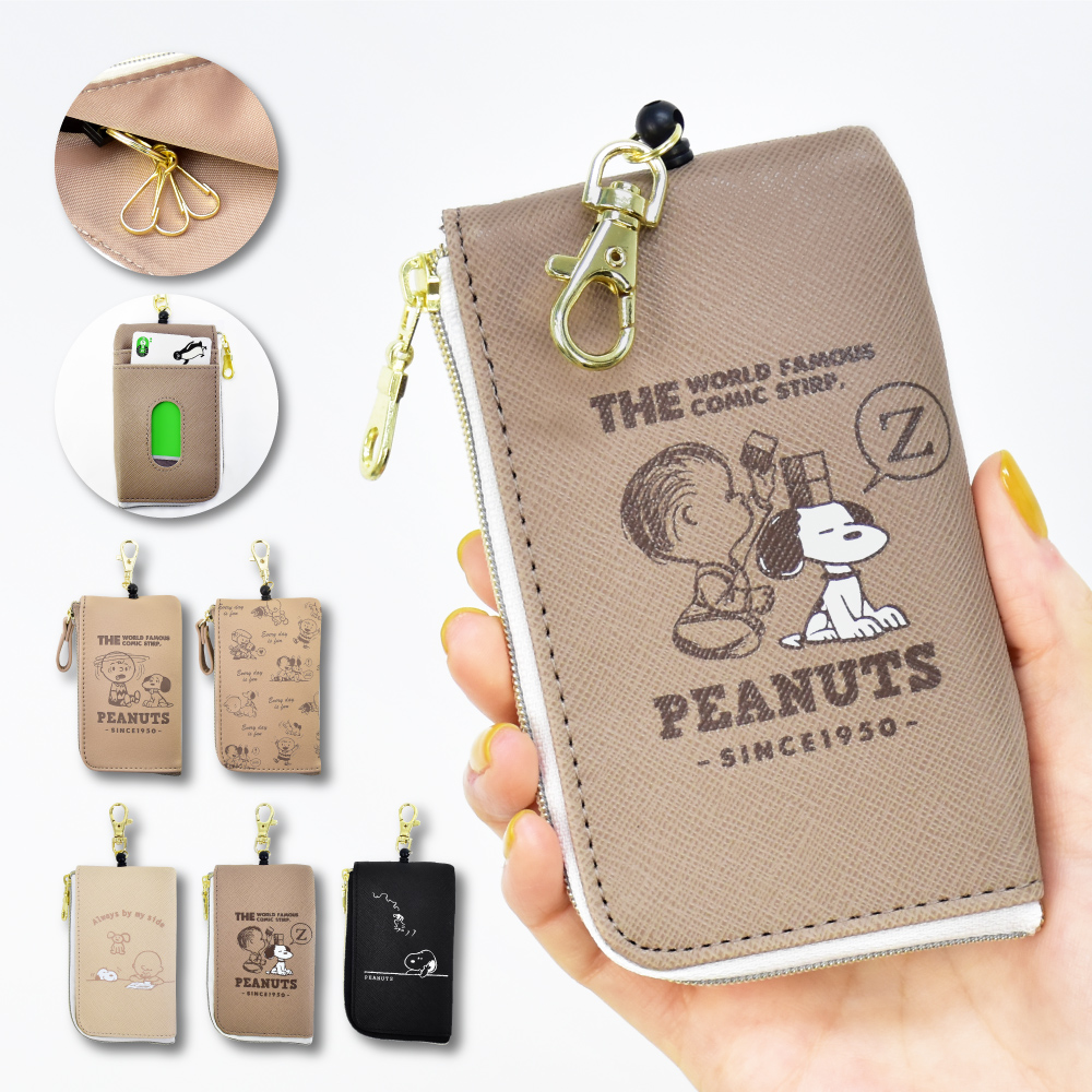 SNOOPY キーケース スマート キー レディース 女子 カード入れ パスポーチ フェイクレザー 車 小さい カード ギフト プレゼント