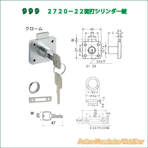 999 面打シリンダー引出錠 2720−22 同一キー