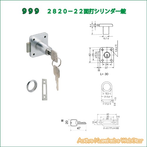 999 面打シリンダーロッカー錠 2820−22 鍵違い