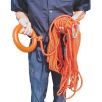 レスキューロープ 太さ約10mm 長さ約30m品番 R-ROPE30Mオレンジ中空構造プラスチック樹脂製のリング付き (外径約16.5cm 内径約10.5cm)金属製フック付き水難事故の予防、危険区域への設置に。船上の装備に。水上スポーツ、マリンスポーツのスローロープとして。救命浮輪の補助として。とても丈夫なロープですが、山岳用、登山用ではありません。水中での浮力は、浸水後24時間を目途としています。ロープは、紫外線、雨水、海水などで劣化します。ロープの管理は万全にしてください。紫外線があたる場所での使用は2年を目途に。冷暗所での保管は5年を目途に。水難防災用に屋外常備する場合は1年を使用限度としてください。使用前に結び目を、強く縛り直してください。ロープの長さは、規格表記なので、およその数値になります。※ご使用時、まれに色落ちが生じる場合がございます※※製品使用時に起こるすべてのことへの保証はありません※
