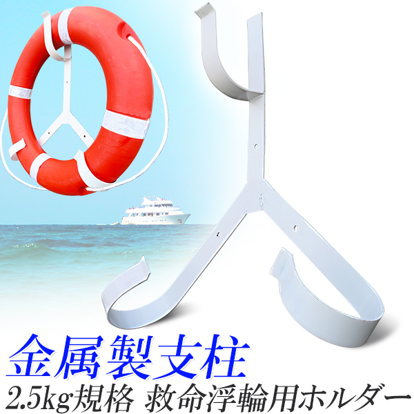 救命浮環用支柱ラックホルダー 救命浮輪支柱ホルダー 防災用 大サイズ 2.5kg規格用 金属銅板製