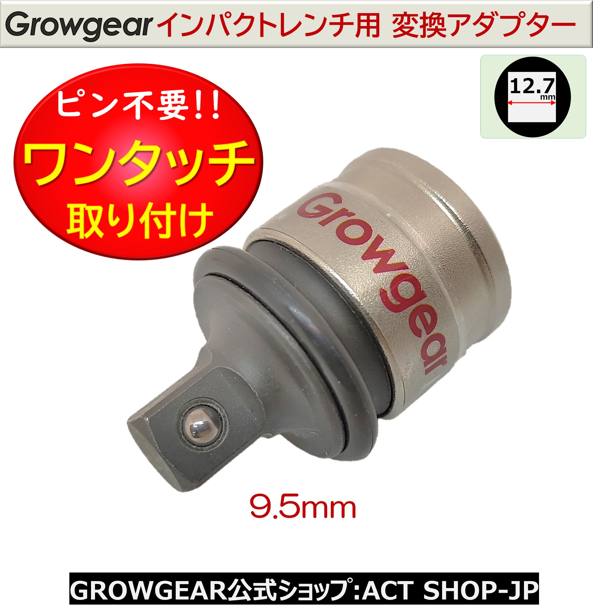 GROWGEAR 打撃に強くピンが要らない インパクトアダプター インパクトレンチ 12.7 → 9.5 変換 アダプター ソケットアンビル ピン交換の「面倒くさい」を解消中