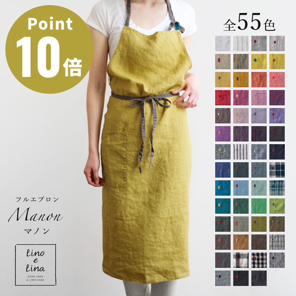 【全55色 無地1】Lino e Lina リーノエリーナ フルエプロン マノン Manon リネン 100% 天然素材 レディース メンズ おしゃれ 北欧 リトアニア 着丈100cm 爆買