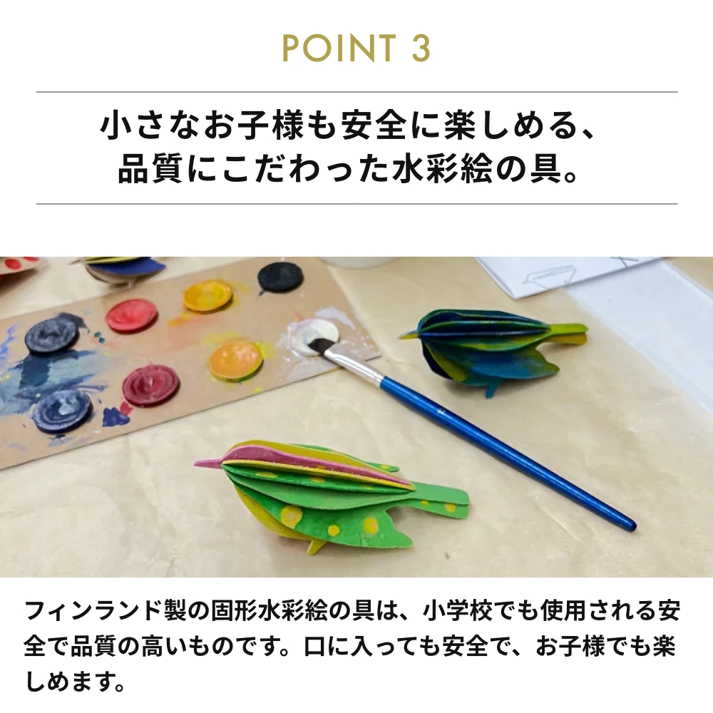 筆付きで直ぐに色塗りが楽しめるワクワクする絵の具セット。