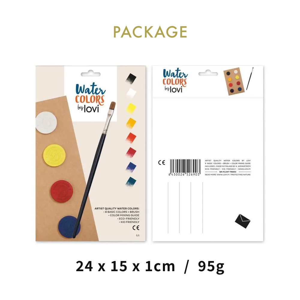 Lovi(ロヴィ)Watercolors 固形 水彩 絵の具 8色 筆付き 北欧 色塗り 子供 インテリア 水彩 プレゼント ギフト オブジェ バーチ材 アンネ・パソ