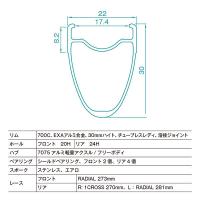 ●30mmディープ、22mmワイドのリムを2:1スポークレースで組み、スポークテンションを最適化。