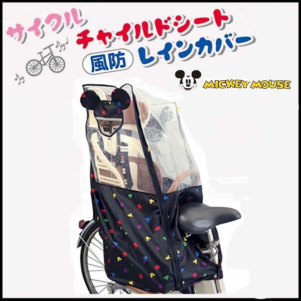 自転車用カバー シキシマ リアシートカバー (ミッキーマウス) ヘッドレスト付後ろ子供のせ用 風防レインカバー