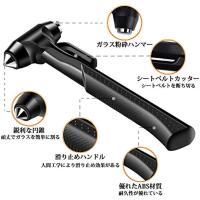 【シートベルトカッター付き】シートベルトにロックが掛かってしまい外せない場合には、ハンマーのサイドについたカッターで切断することができます。