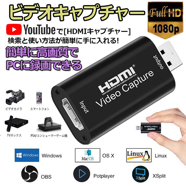 【HDMIビデオキャプチャー】HDMIキャプチャーカードはPCで高画質で録画できます。これはUVC(USBビデオクラス)に対応でき、PCとゲーム機の間に接続するだけでPCゲーム映像を簡単に録画できます。