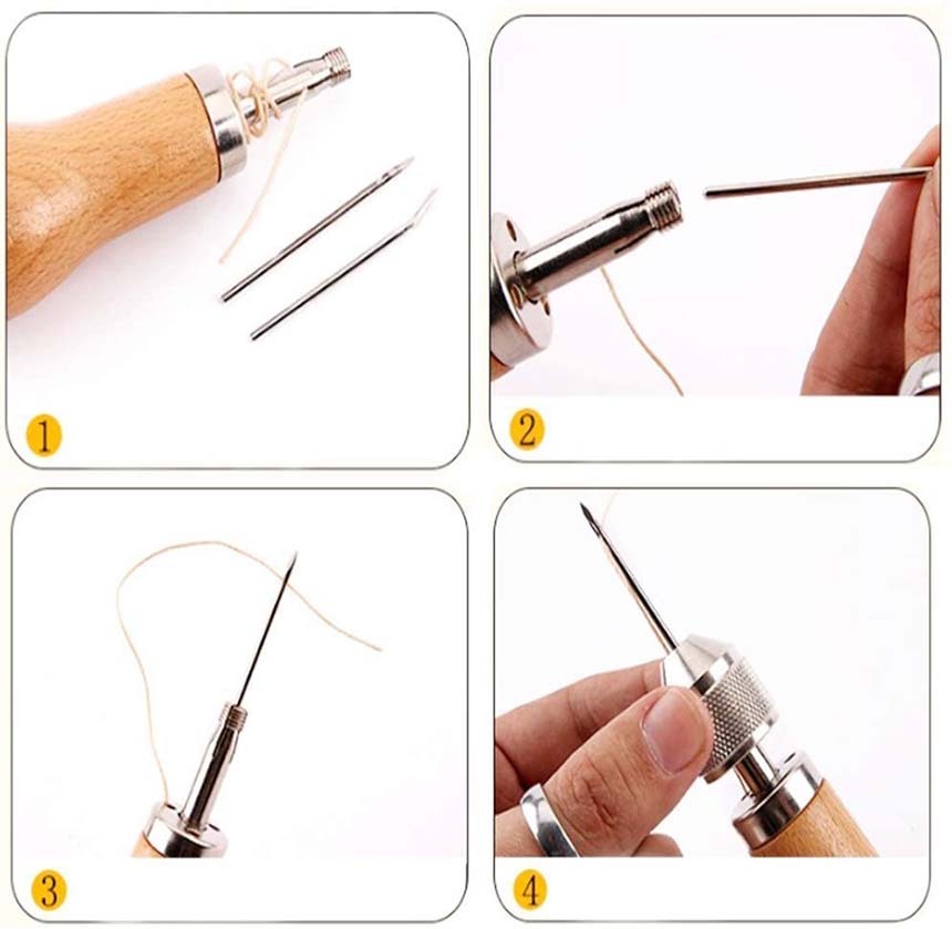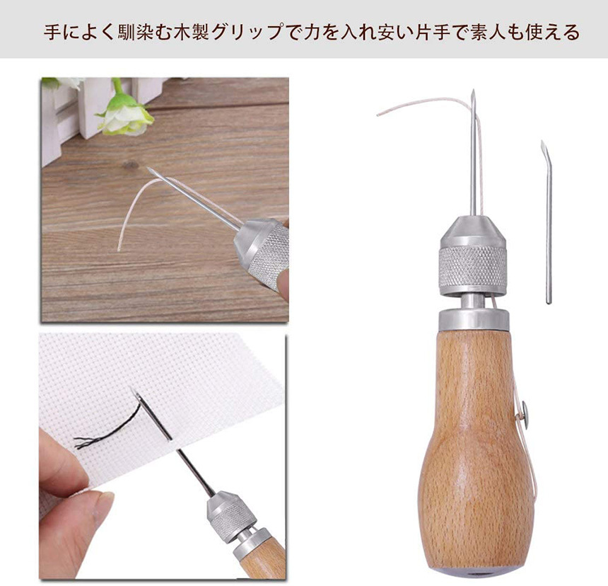 片手で縫える レザークラフト用 スピーディーステッチャー 手縫機 ハンドミシン 糸通し器 革縫い針セット 針2本入り 革用ミシン針 革工具