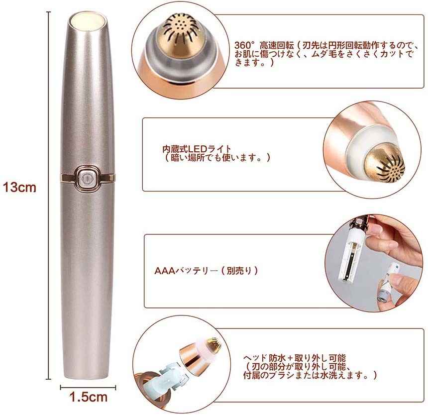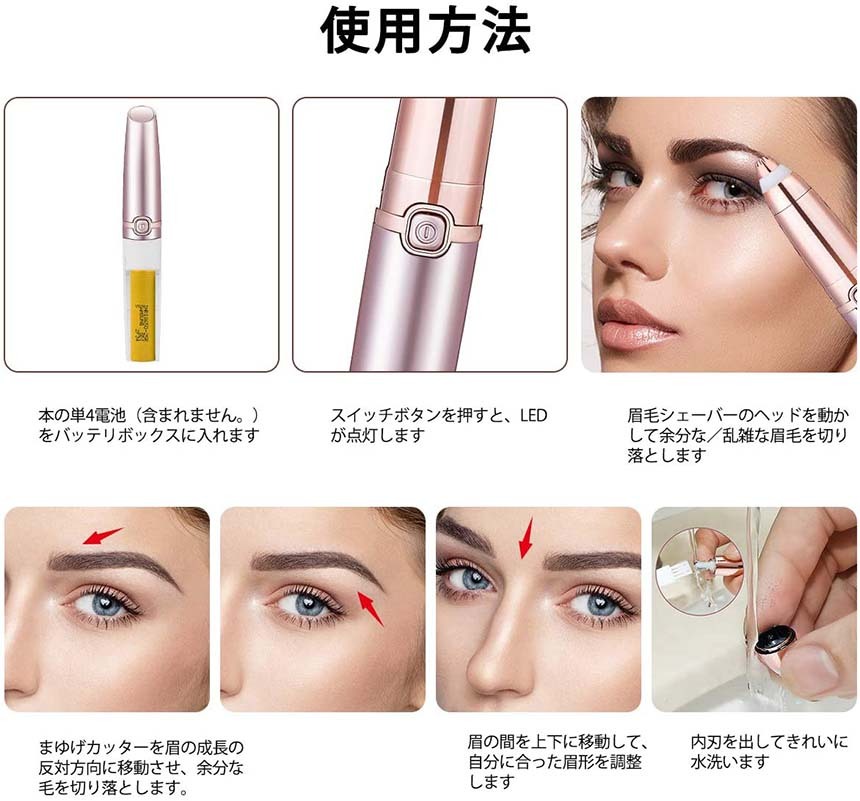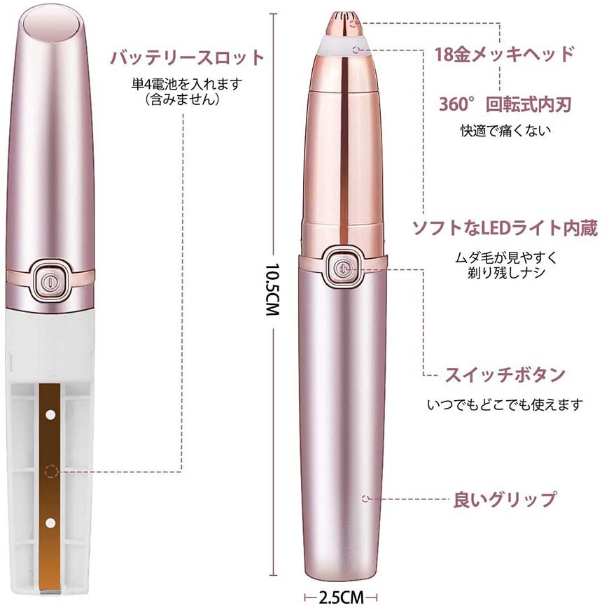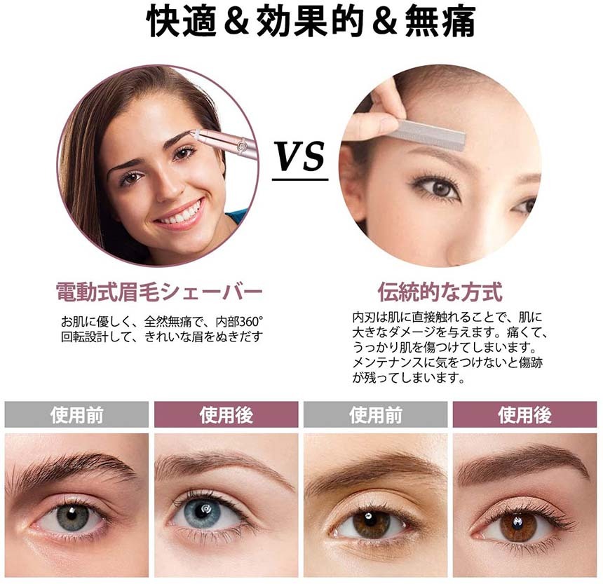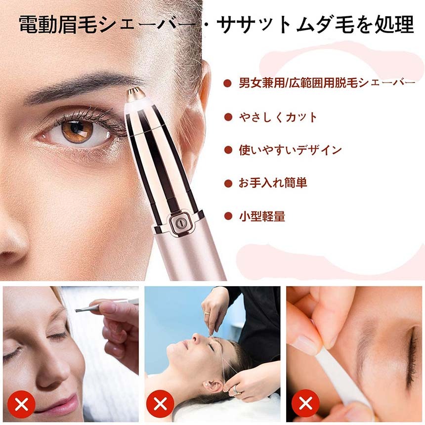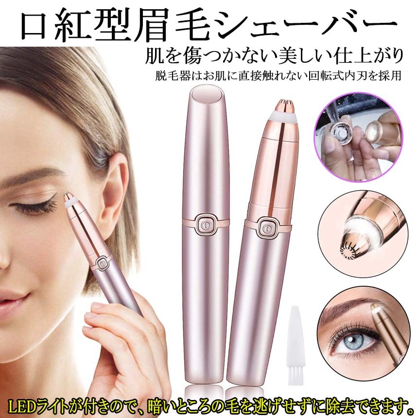 眉毛シェーバー 電動式 レディース 眉剃り 眉毛カッター 眉毛トリマー 脱毛器 フェイスシェーバー LEDライト 360°回転 眉用 軽量