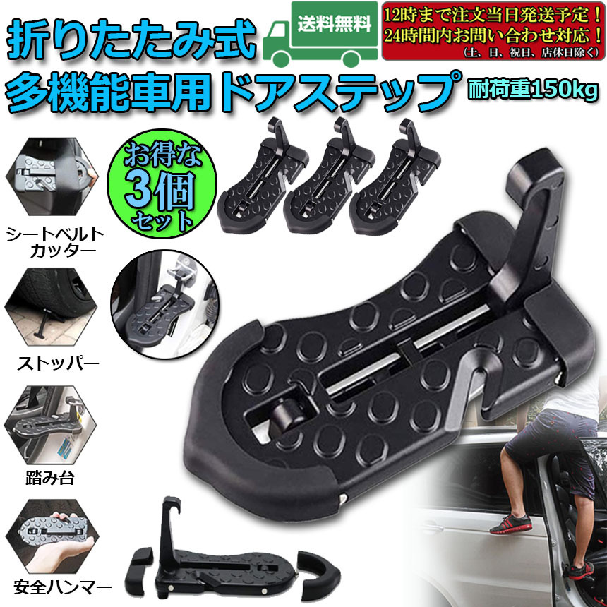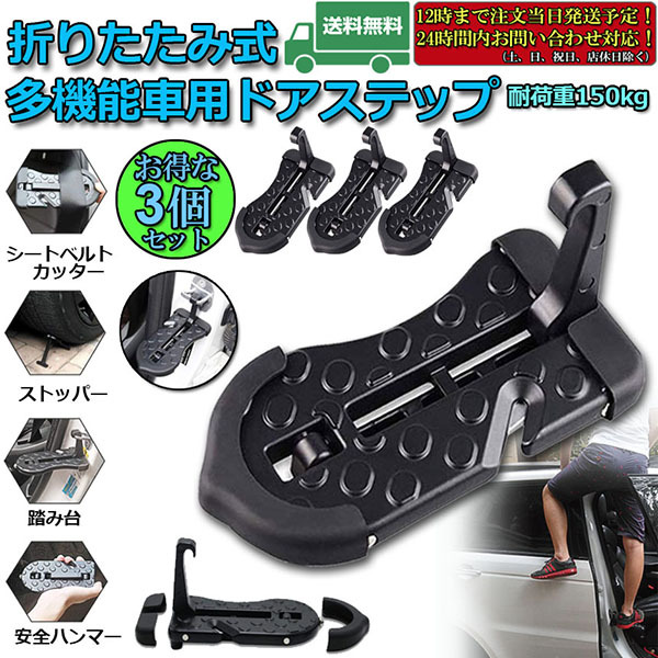 【多機能】あらゆる種類のSUVまたはRVに対応しています。ドアストライカーが付いているSUV、CAR、 Jeep 、Minivanなど、ほとんどの車種でご利用いただけます。 車のルーフに荷物を置いたり、取ったりすることを楽にできます。洗車用品として、ルーフを洗うことや拭うことにもよく役立ちます。良い旅行をに楽しむことができます。 また、タイヤストッパー、安全カッター、電話スタンドとしても使用できます。
