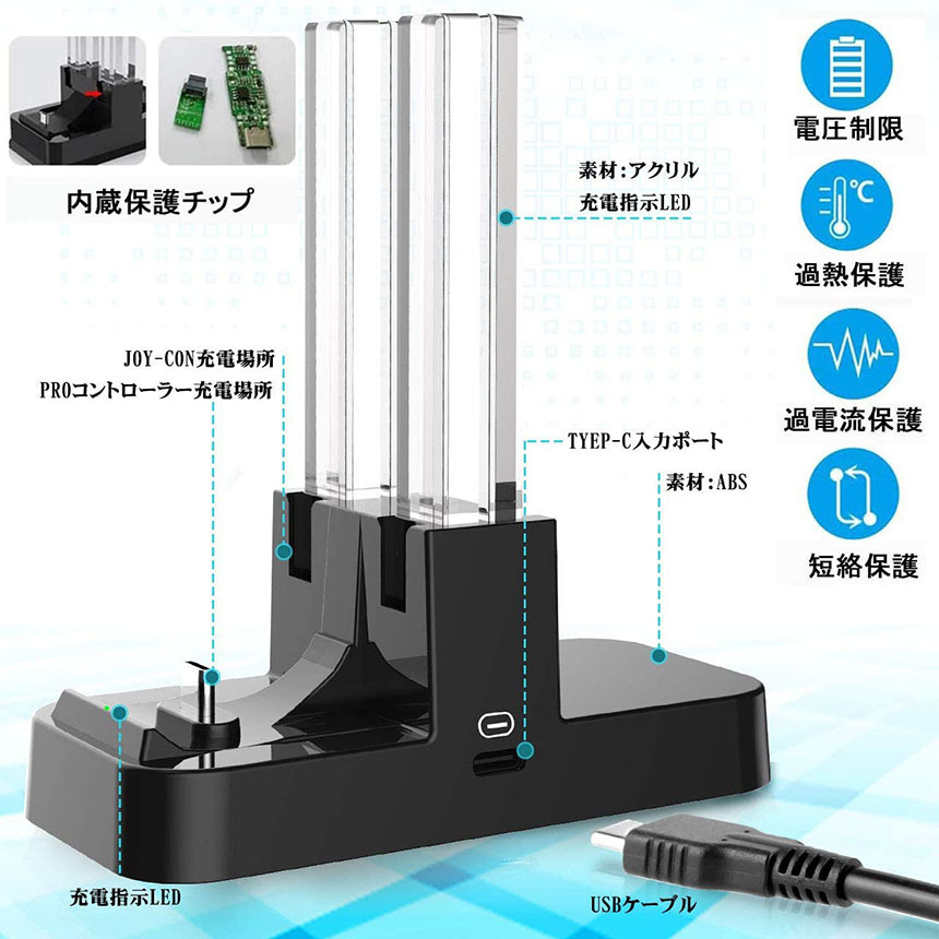 本製品はNintendo Switch Joy-Con&Pro コントローラー対応の互換充電器です。