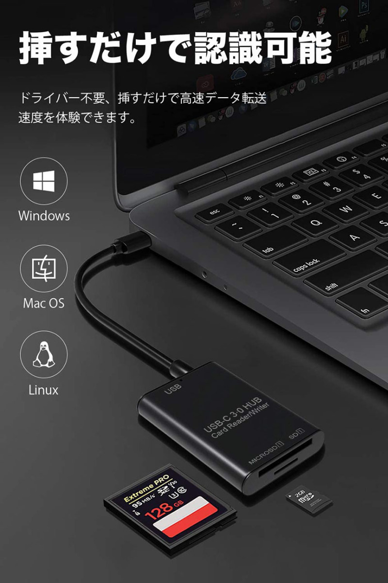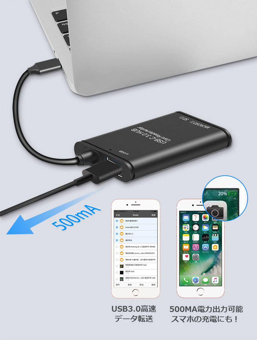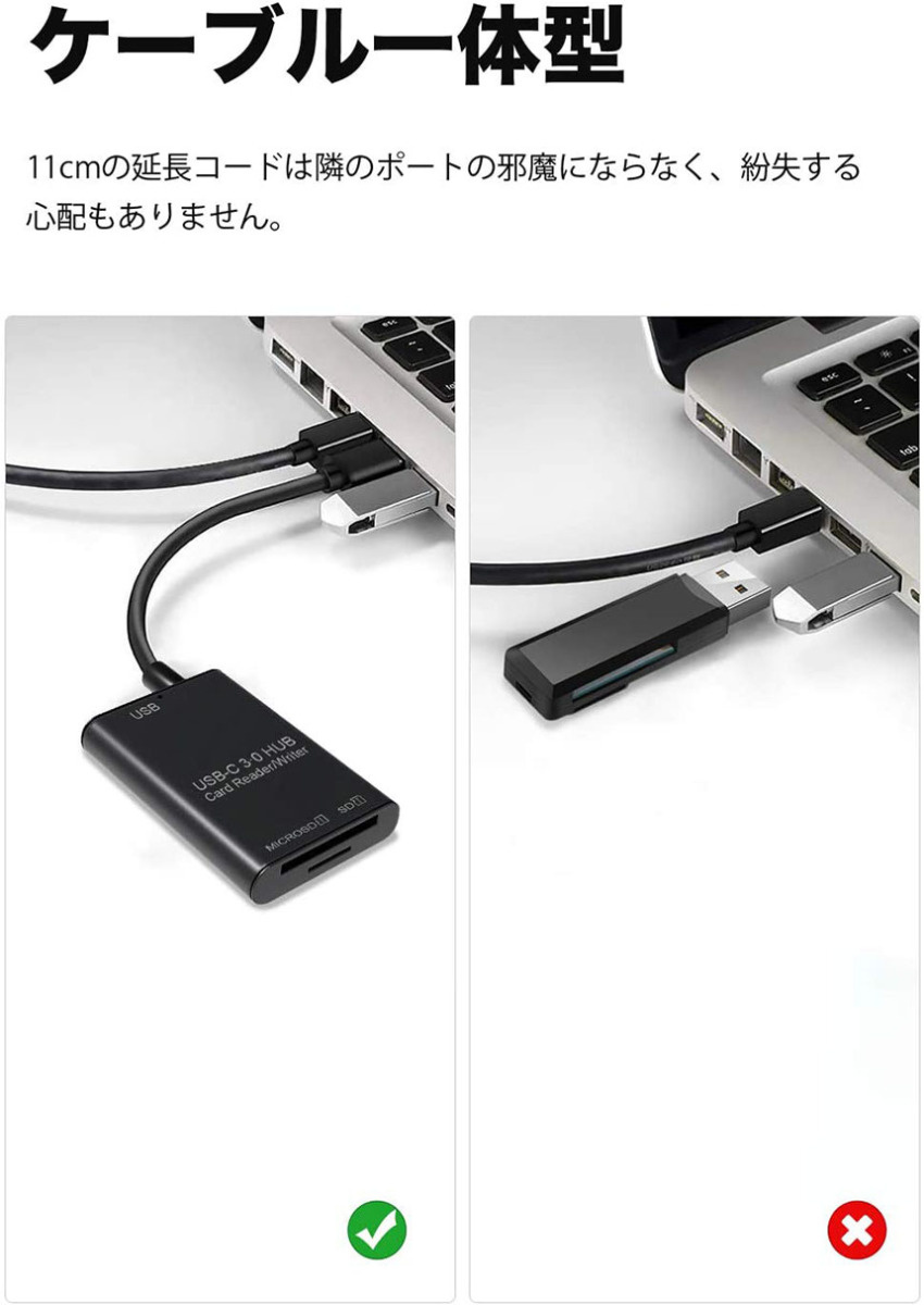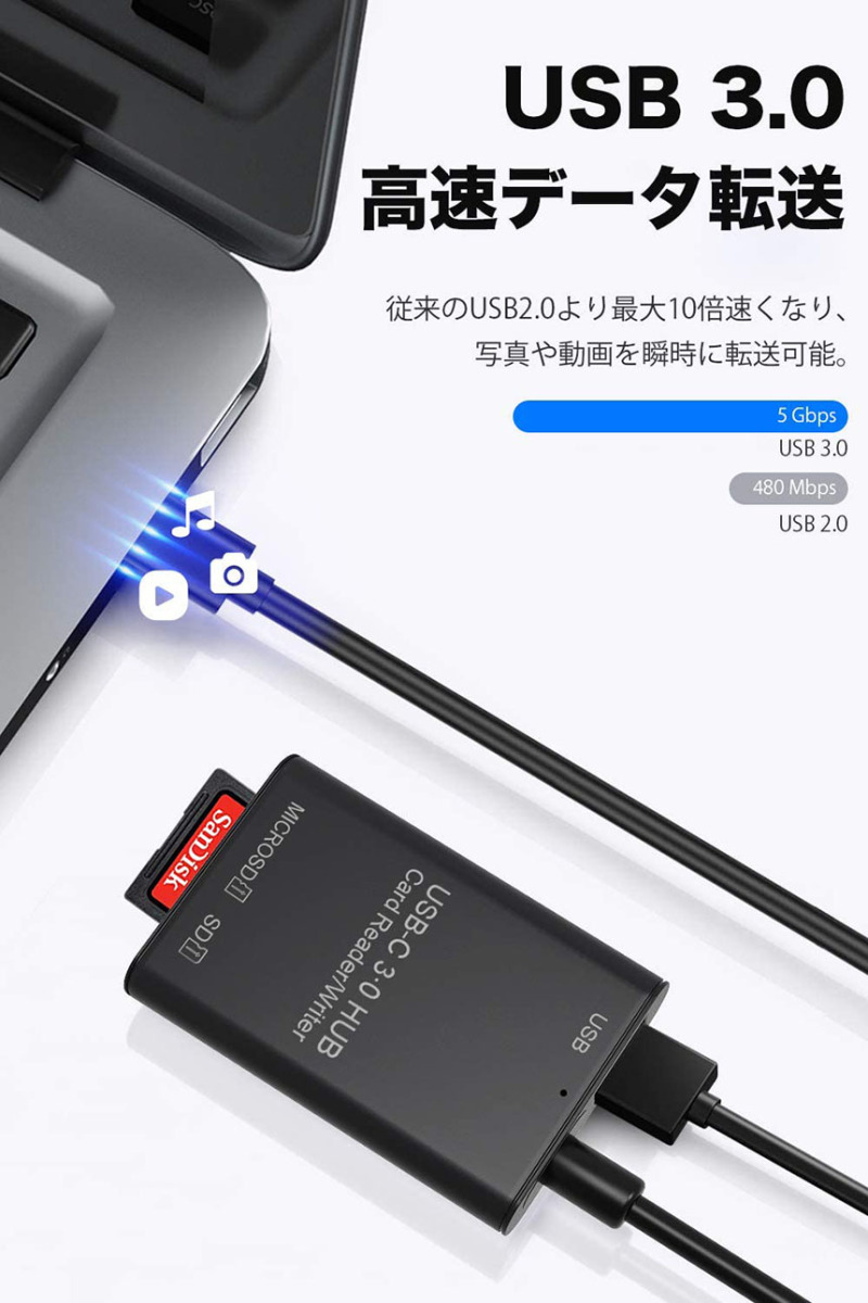 USB Type C カードリーダー 3in1 USB3.0 メモリカードリーダー 高速データ転送 OTG機能付き Micro SD SDカ