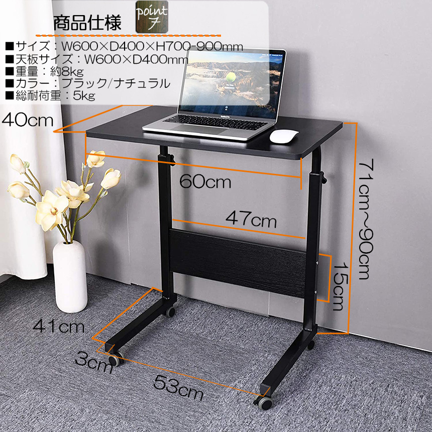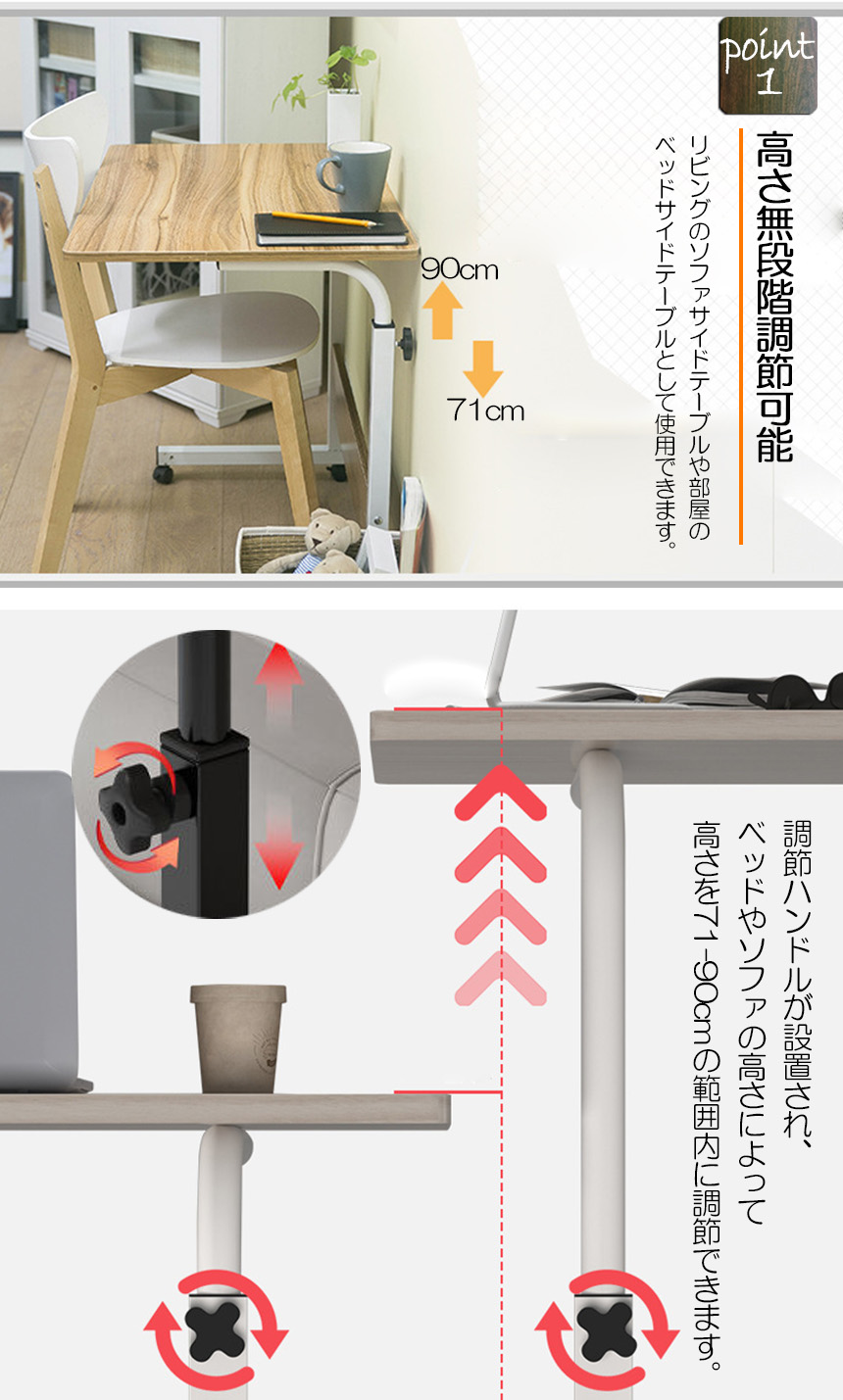 【高さ調節可能】調節可能/簡単な移動、調節可能な高さ71-90cm、滑らかキャスターでデスクを好きな場所に移動できます