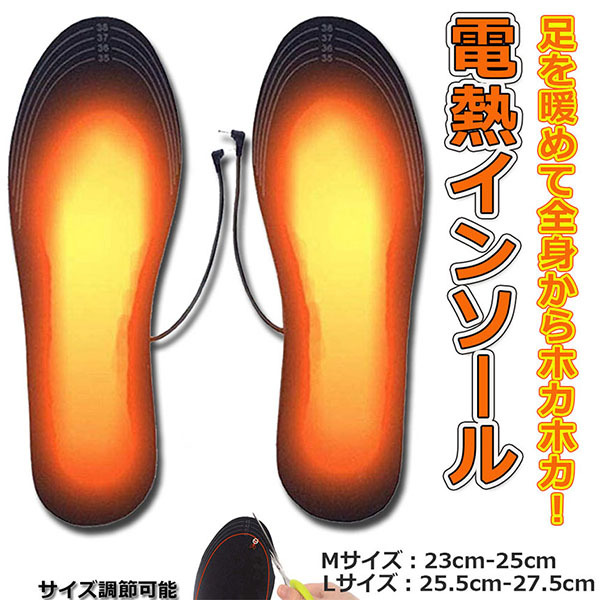 【防寒対策に効果的】電熱線内蔵で軽くてあったかインソールです。ソール全面に張り巡らされた電熱線により、かかとからつま先まで効果的に保温でき、底冷えから足を守ります。冷え性の方や防寒対策に効果的!※本製品は蓄熱効果がありません、加熱しながらインソールを使わないでほうがいいです。