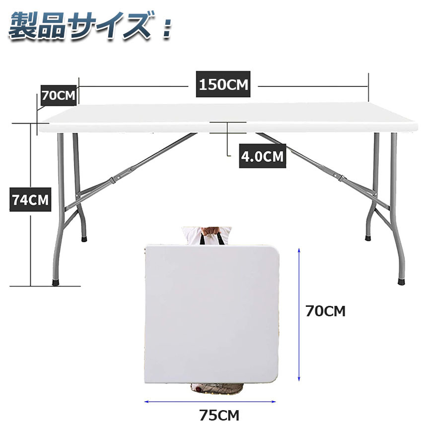 【収納が簡単】:全体のサイズはL 150cm * W 70cm * H 74cm(約)、大人6〜8人で十分なスペース、折り畳み寸法はL 75cm * W 70cm * H 8cm(約)、 スペースをほとんどとらず、保管も非常に簡単です。
